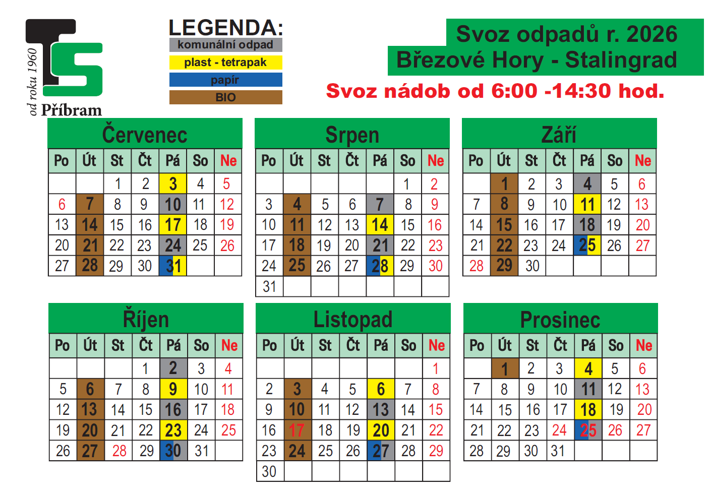 Prosíme obyvatele této lokality, aby se řídili uvedeným harmonogramem svozu a měli nádoby připravené včas.