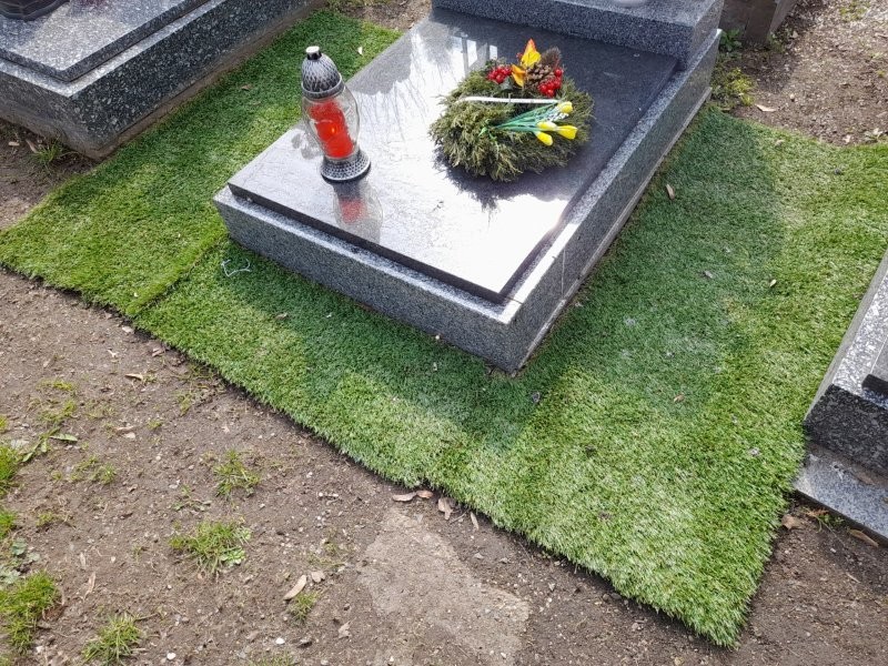 Bohužel se i nadále setkáváme s případy, kdy je travnatý porost na hrobových místech chemicky odstraňován a nahrazován umělými povrchy. Takový postup je v rozporu s Řádem pohřebiště a není v souladu s dlouhodobou koncepcí správy hřbitovů.