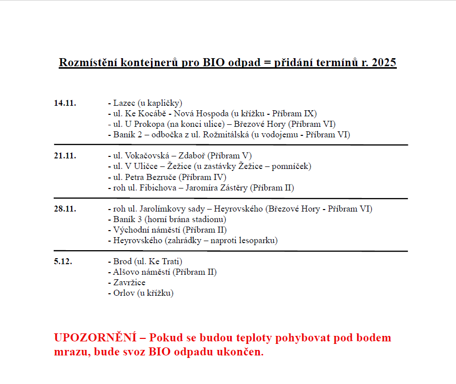 Přesné termíny a místa rozmístění kontejnerů: [vložit odkaz nebo přílohu]
